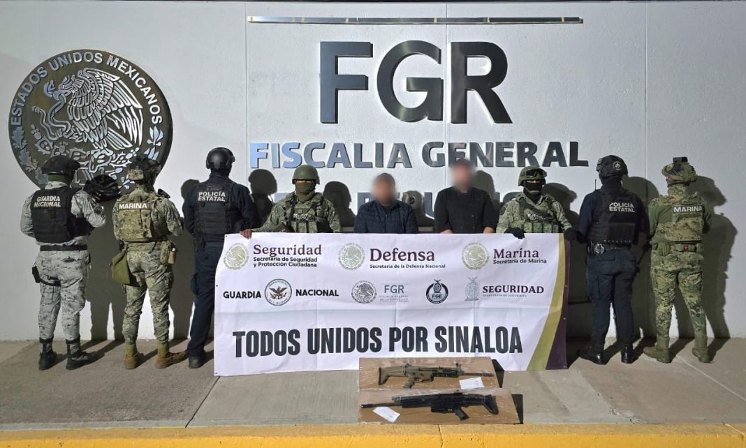 CULIACÁN, Sin.- Elementos federales, la Fiscalía de Sinaloa y Secretaría de Seguridad Pública, lograron la detención de dos hombres armados con fusiles Scar en el poblado de San Francisco, Culiacán.