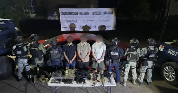 CULIACÁN, Sin.- Elementos de la Secretaría de Seguridad Pública de Sinaloa, a través del Grupo de Operaciones Especiales Sinaloa (GOES) de la Policía Estatal Preventiva y de la Guardia Nacional, en coordinación con el Ejército Mexicano, la Secretaría de Marina, la Secretaría de Seguridad y Protección Ciudadana, la Fiscalía General de la República y la Fiscalía General del Estado, detuvieron a 3 civiles y aseguraron armas largas, cargadores y municiones.