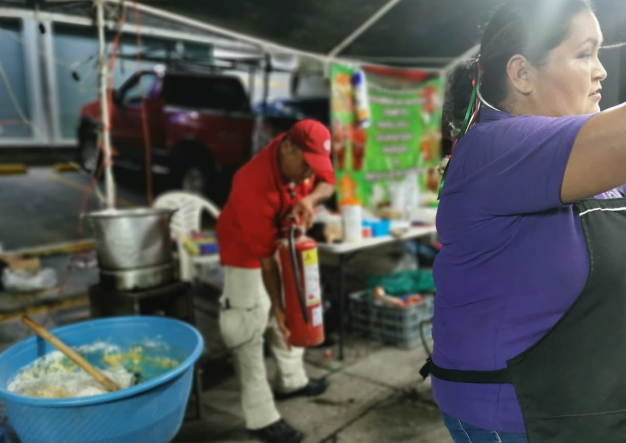 Elementos de la Unidad de Protección Civil, realizaron revisiones constantes a los puestos de venta de comida y antojos, para verificar que cumplieran con la normatividad establecida.