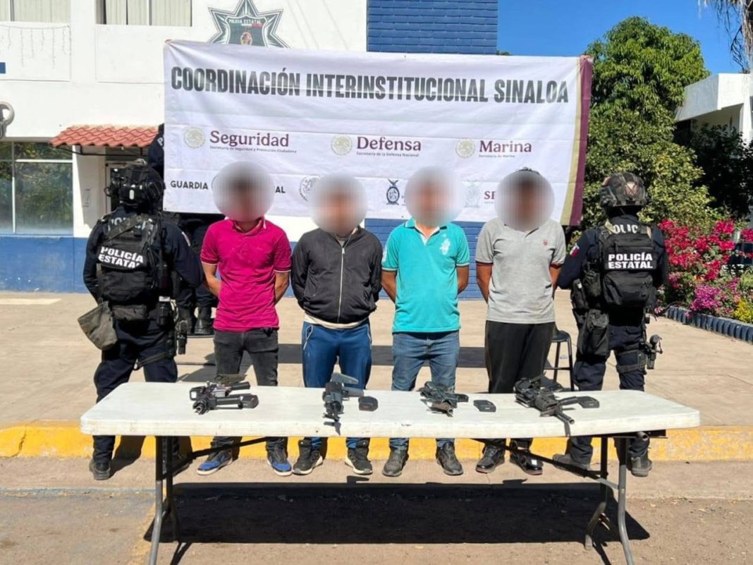 CULIACÁN, Sin.- Elementos del Ejército Mexicano, de la Guardia Nacional, de la Agencia de Investigación Criminal y de la Secretaría de Seguridad Pública del Estado, a través de la Policía Estatal Preventiva, en coordinación con la Secretaría de Marina, la Secretaría de Seguridad y Protección Ciudadana, la Fiscalía General de la República y la Fiscalía General del Estado, detuvieron a ocho civiles y aseguraron armas largas, cargadores, cartuchos y seis vehículos reportados como robados en operativos en el municipio de Badiraguato.