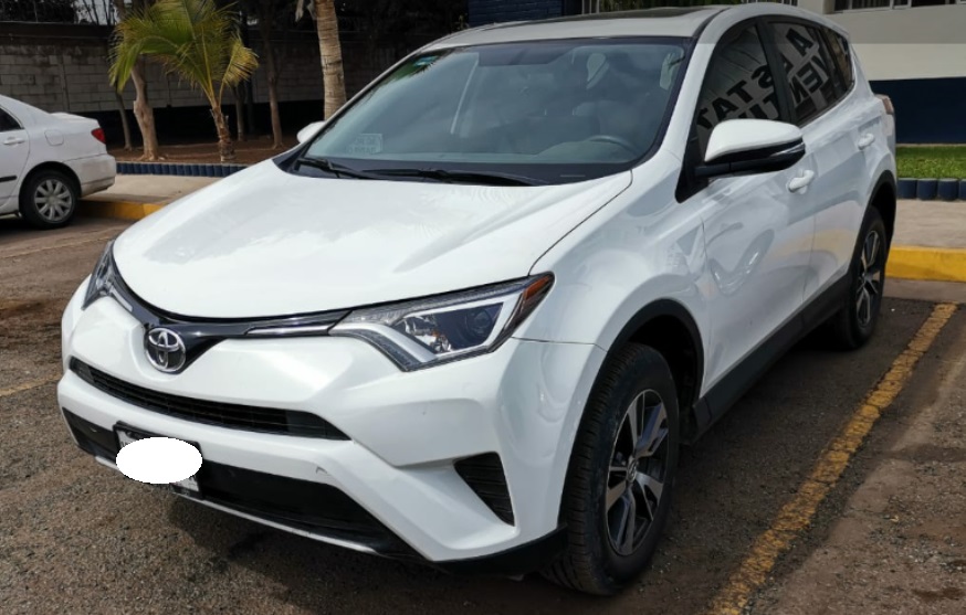 La unidad es de la marca Toyota, línea Rav4 de color blanco, presentaba en la placa y el número de serie alteraciones por lo que fue asegurada para definir su estatus.