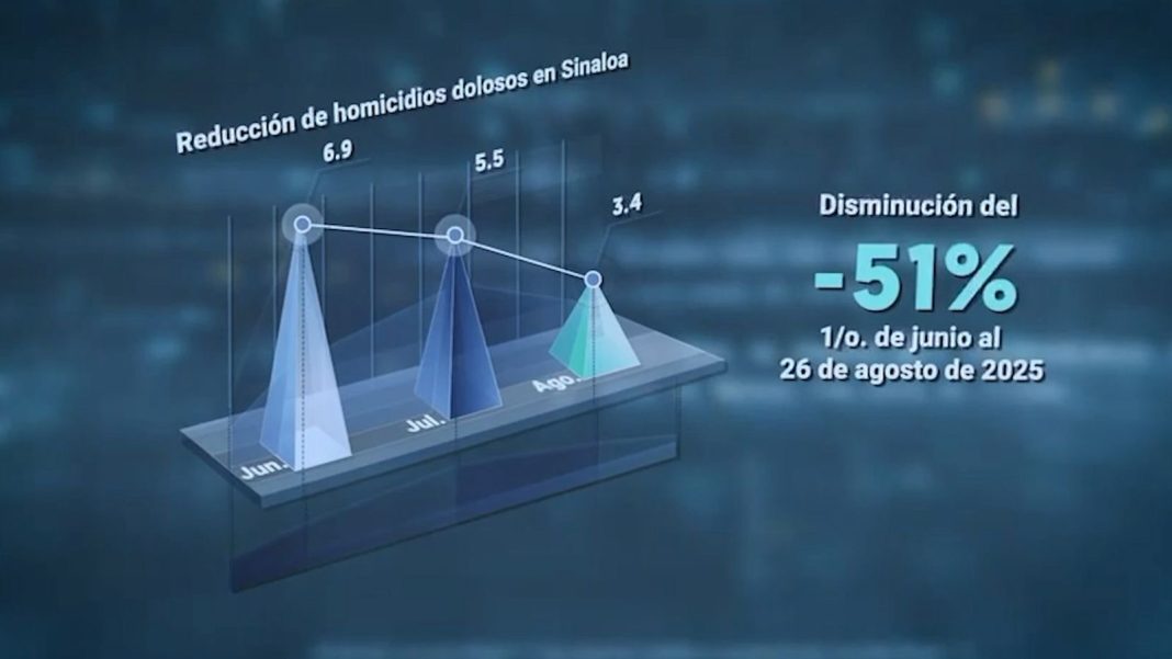 En el video también se destaca que la seguridad del estado de Sinaloa sigue siendo una prioridad para el Gobierno de la República, por lo cual la presidenta instruyó al Gabinete de Seguridad, para que algunos de sus miembros acudan quincenalmente a la entidad para supervisar las labores que realizan los tres niveles de gobierno para recobrar la tranquilidad en este estado, resultando en una disminución del 51 por ciento en homicidios dolosos del 1 de junio al 26 de agosto, y debido al recién implementado plan denominado “Cero robo al autotransporte”, del 9 de julio de este año en la carretera Mazatlán-Culiacán, se ha logrado reducir los robos en 46 por ciento.