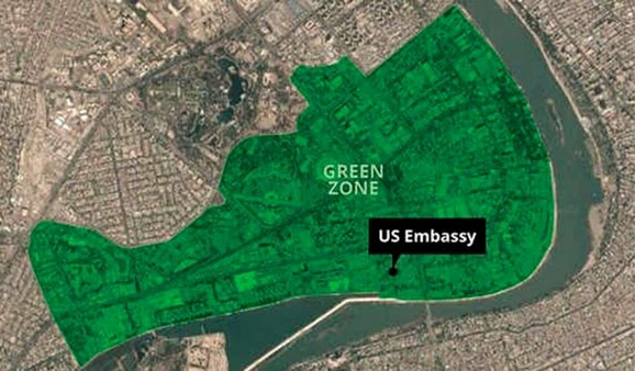 Fuentes de seguridad iraquíes señalaron que uno de los cohetes lanzados el miércoles contra la Zona Verde cayó entre un edificio en construcción y un lago cercano a la Embajada.