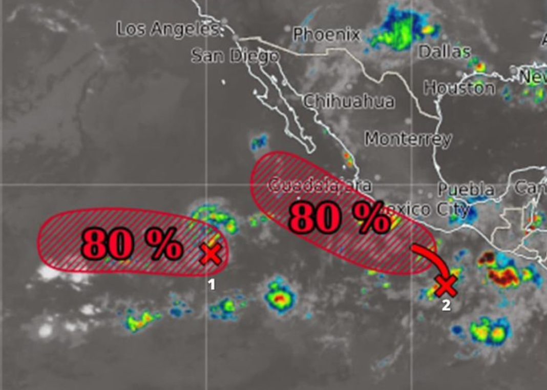 Asimismo, Osuna Tirado añadió que prevalece el monitoreo de dos zonas de baja presión con 80 por ciento de probabilidad ciclónica a siete días, una de ellas con mayor énfasis de vigilancia ya que se mueve paralela a las costas.