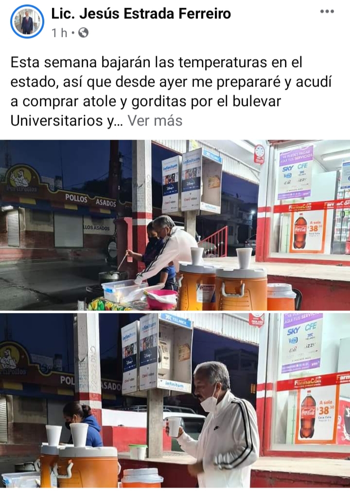 En la más reciente con su atolito mañanero junto a una vendedora ambulante establecida en la periferia de Ciudad Universitaria, los internautas respondieron.