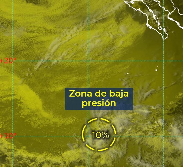 Otra zona de baja presión disminuye 10% de probabilidad para desarrollo ciclónico en 5 días. Se localiza al sur-suroeste de Cabo San Lucas, B.C.S.