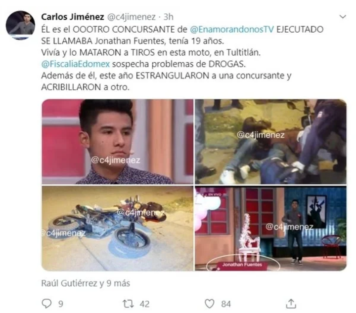 En un principio hubo cierta confusión respecto de la identidad del joven asesinado, pues se pensó que se trataba de Jonathan Ordoñez Aguilar, quien se hiciera famoso como “Pepe” (porque al aparecer en la emisión sonaba Two men sound, que se suele tararear como “pepepepepe”). Jonathan salió de Enamorándonos a mediados de 2018 y ahora tiene una sección en el programa Hoy de Televisa.