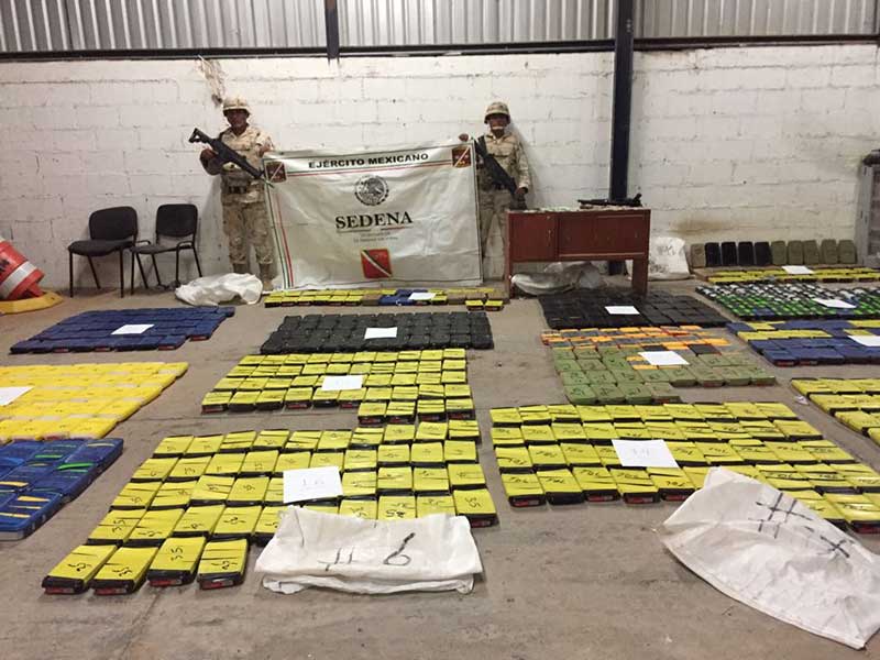 CABORCA, Son.- Soldados del Ejército mexicano decomisaron un cargamento valuado en 7 millones de dólares en metanfetamina; la droga fue abandonada en Caborca, a escasos kilómetros de la frontera entre Sonora y Arizona, donde una avioneta aterrizó y descargó en una pista clandestina de donde continuaría su camino hacia los Estados Unidos.