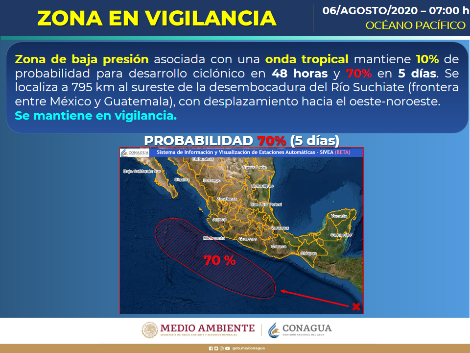 Estima alcance un 70% de probabilidad de desarrollo ciclónico frente a las costas mexicanas en este periodo