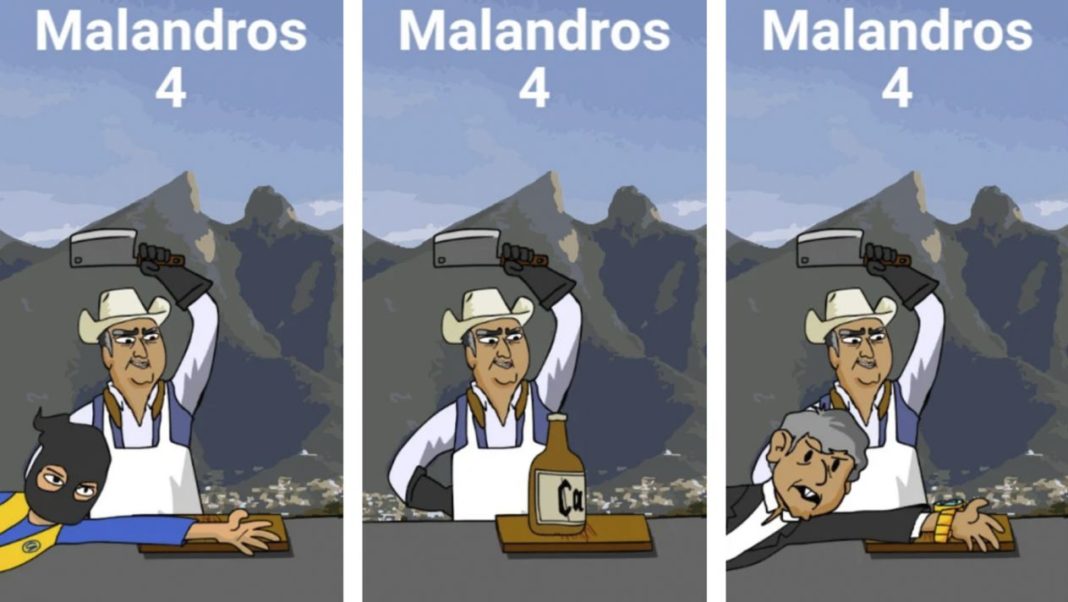 “Raza, ayuden a su tío favorito para hacer justicia con puño impertinente y mocharle la mano a esos cabrones que se quieren llevar nuestros charrones y caguamas”, es una de las frases que aparecen en el juego interactivo.