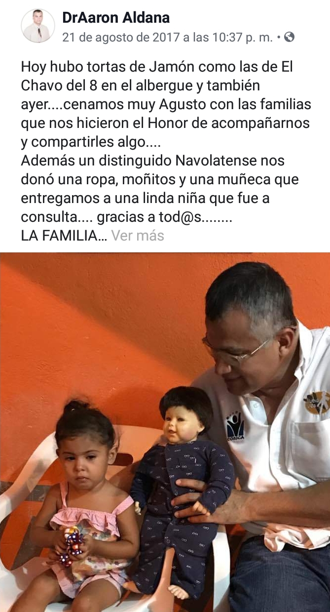 Actualmente opera un albergue para personas desamparadas y necesitadas de alimento a un costado de la clínica del IMSS en Navolato. Busca apoyo de empresarios y ciudadanos como despensas para dar comida las tres veces al día en un horario de 8 a 8 en este inmueble.
