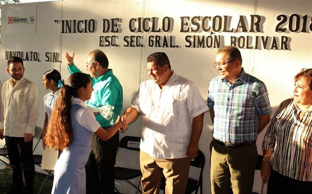 NAVOLATO, Sin.- El gobierno municipal dio el arranque oficial de inicio del ciclo escolar 2018-2019, en la escuela Secundaria General “Simón Bolívar” y en la escuela primaria de tiempo completo “Dr. Fortino Cuéllar Ramírez”, en donde estuvo acompañado por autoridades educativas, alumnos y padres de familia.