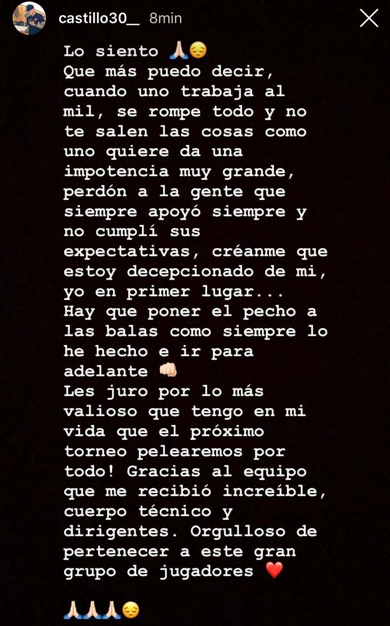 “Lo siento. Que más puedo decir, cuando uno trabaja al mil, se rompe todo y no te salen las cosas como uno quiere da una impotencia muy grande, perdón a la gente que siempre apoyó y no cumplí sus expectativas, créanme que estoy decepcionado de mí, en primer lugar…” (sic).