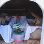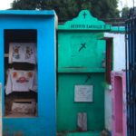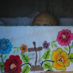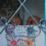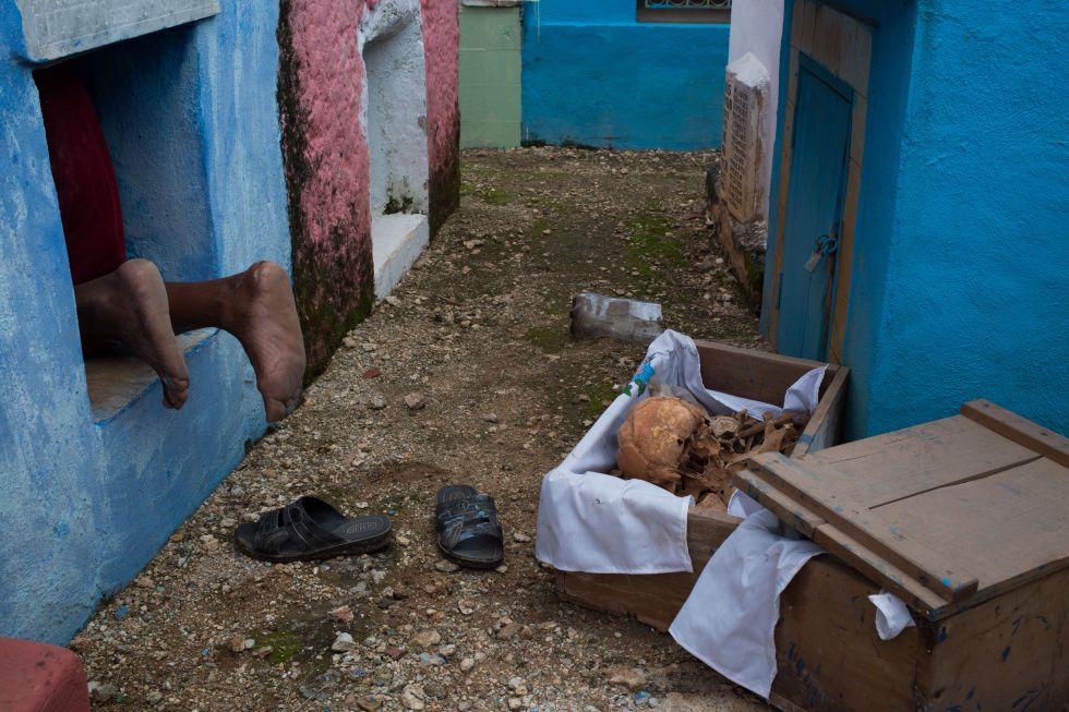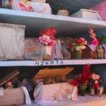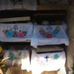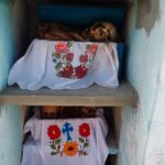 Es común ver los cráneos y los huesos saliendo de los osarios, resguardados con un mantel donde se puede leer el nombre del difunto bordado con colores brillantes, siempre acompañados con flores multicolores y la cruz.
