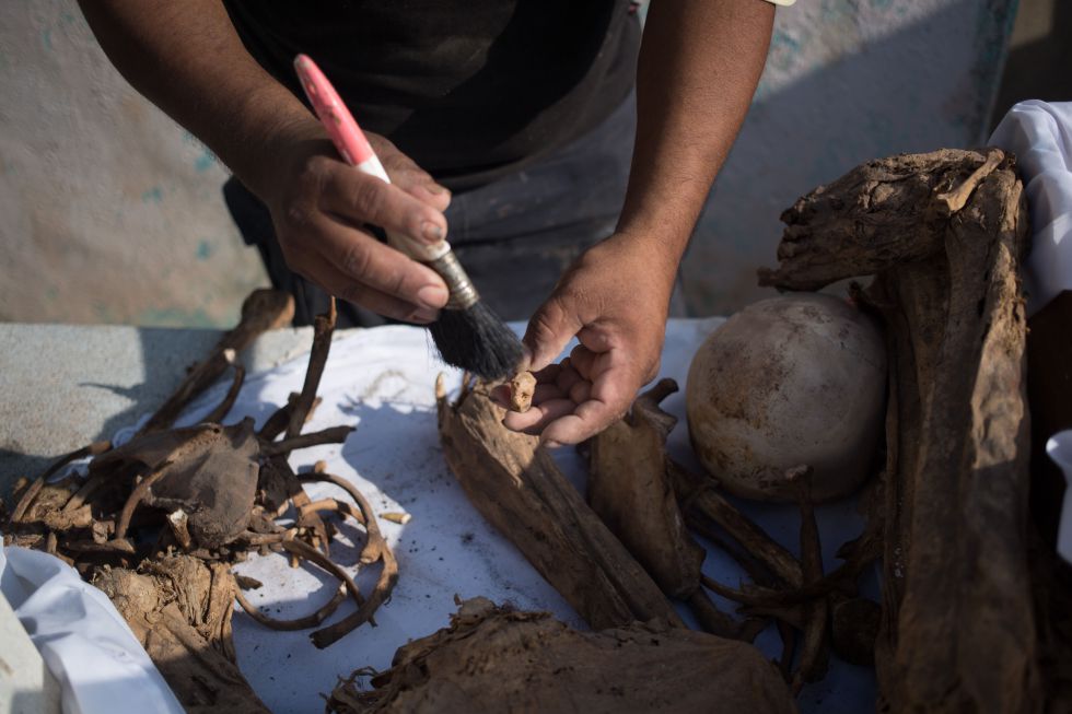Los restos son limpiados utilizando brochas y trapos para retirarles polvos y restos de insectos.