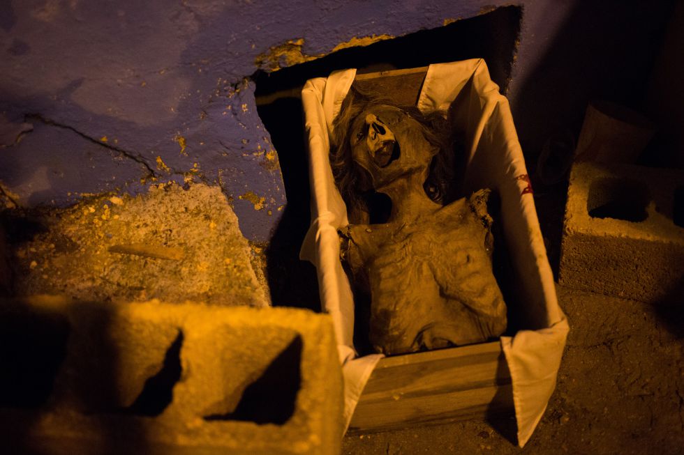 “Fue su destino” dice Alfonso el sepulturero al mostrar los restos de “Mónica”, ya que no todos los restos llegan a momificarse de esta manera.
