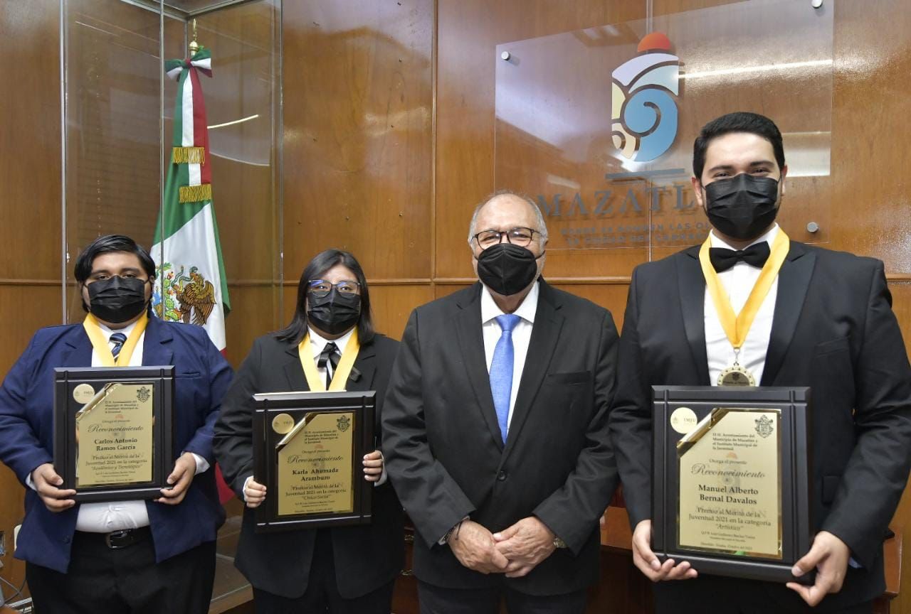 Para recibir sus reconocimientos, al despacho del Alcalde asistieron Ahumada Arámburo, Manuel Alberto Bernal Dávalos, ganador en la categoría Artística; y Carlos Antonio Ramos García, en Académico y Tecnológico.