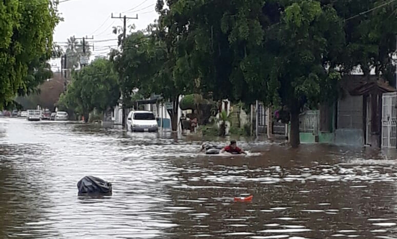 NAVOLATO, Sin.- Sólo bastaron 20 minutos para que las lluvias torrenciales de esta tarde inundaran el Centro de Navolato y algunas colonias.