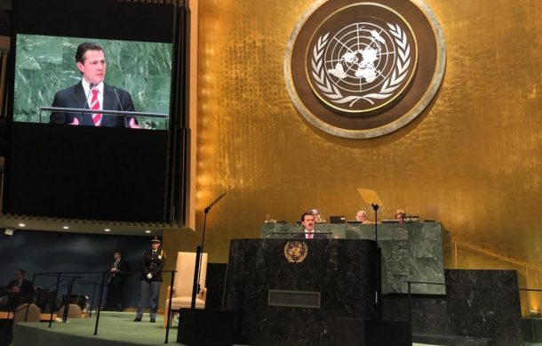 NUEVA YORK, EU.- Con un discurso donde destacó que México ha actuado responsablemente en materia de migración, pero urgió a tomar acciones contundentes contra el tráfico de armas, el presidente, Enrique Peña Nieto, participó en la Asamblea General de la ONU que se desarrolla en Nueva York.