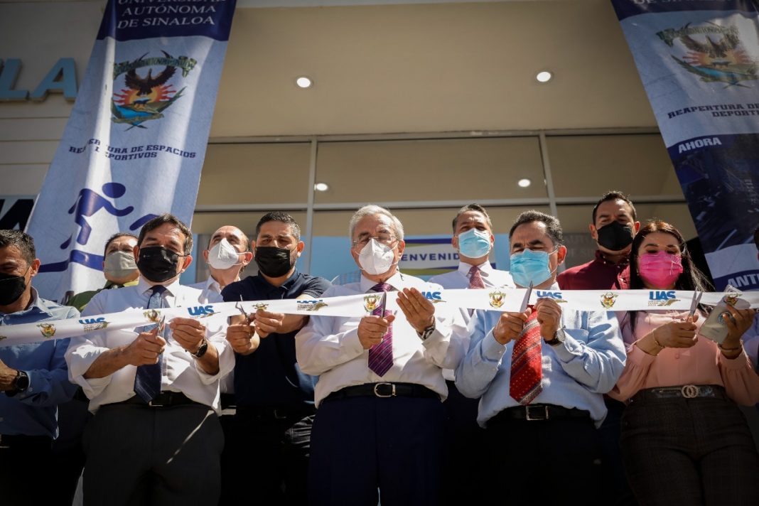El gobernador Rocha y el rector Madueña, acompañados por demás autoridades universitarias, alumnos y deportistas, reaperturaron los espacios deportivos de Ciudad Universitaria, los cuales estuvieron cerrados durante aproximadamente dos años, con motivo de la pandemia del COVID-19.