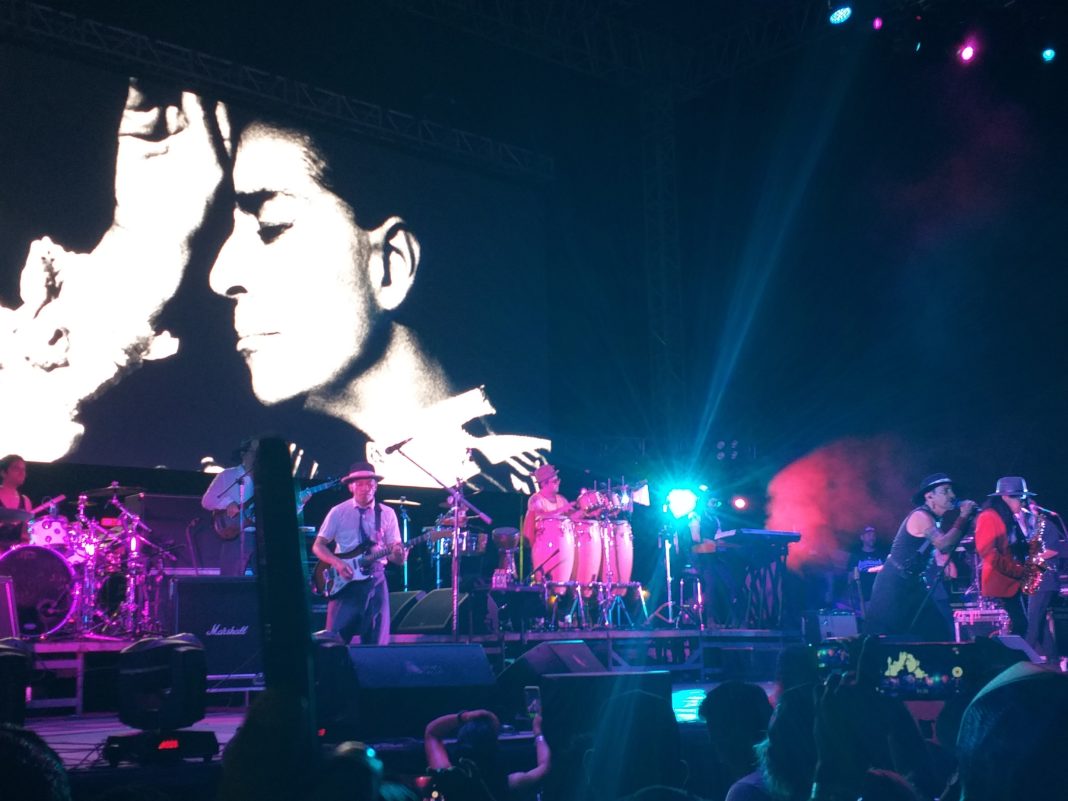 El grupo mexicano que fusiona ritmos como el rock, el ska, el reggae, el punk e influencias tradicionales de la música mexicana como el danzón y el bolero pidió al final por la paz y el regreso de los 43 estudiantes de Ayotzinapa.
