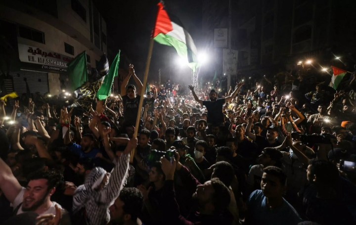 En Gaza y Cisjordania miles de personas salieron asimismo a celebrar el cese de los bombardeos. Muchas banderas palestinas y un sentimiento generalizado de victoria pese a la pérdida de vidas, detalló el medio francés.