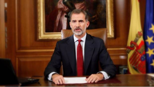 Felipe VI acusó a las autoridades catalanas de socavar “la armonía y convivencia” de la sociedad y añadió que “con su conducta irresponsable pueden poner en riesgo la estabilidad económica y social de Cataluña y de toda España”.