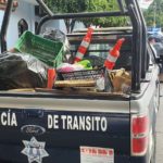 Del lugar fueron retirados 67 objetos, entre cartones y cubetas, los cuales eran utilizados para apartar lugares de estacionamiento, mismos que obstruyen la vía pública.