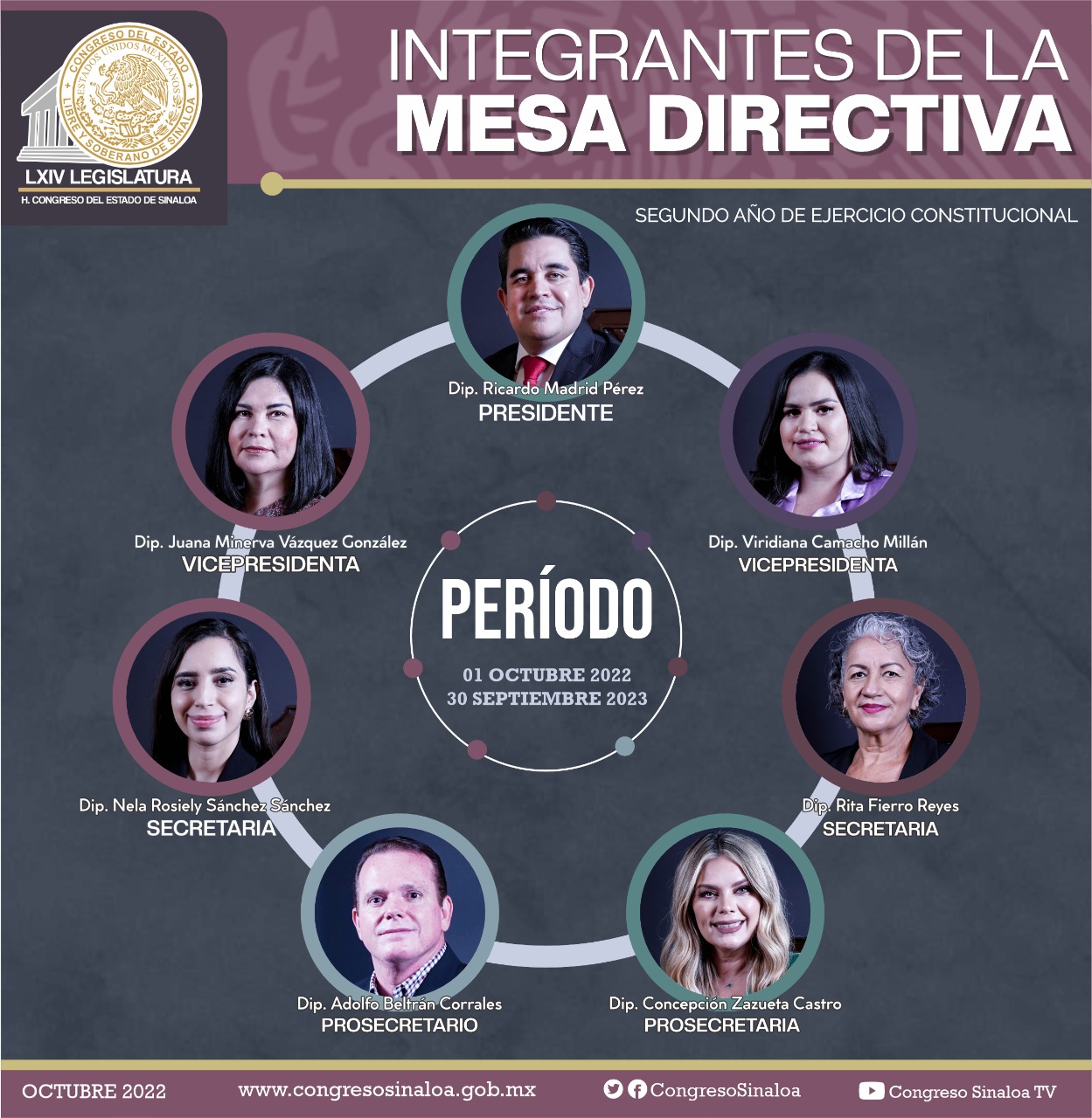 De acuerdo a la Ley Orgánica del Congreso del Estado de Sinaloa, corresponde a la Mesa Directiva conducir las sesiones del pleno preservando la libertad de las deliberaciones, cuidar de la efectividad del trabajo legislativo y aplicar con imparcialidad las disposiciones de esta Ley, sus Reglamentos y los Acuerdos que apruebe el Congreso.
