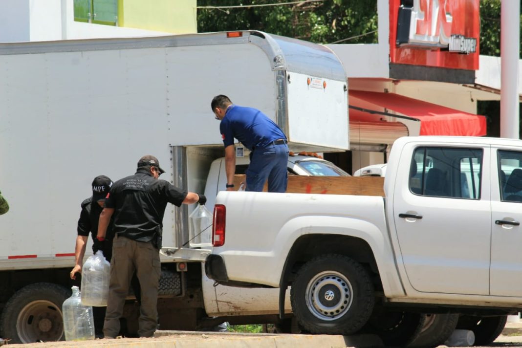 Después del ingreso de los peritos, en el inmueble se localizaron contenedores plásticos y costales con sustancias diversas, sin embargo, será la Fiscalía General de la República la encargada de determinar qué tipo de sustancias había al interior y la cantidad de las mismas.