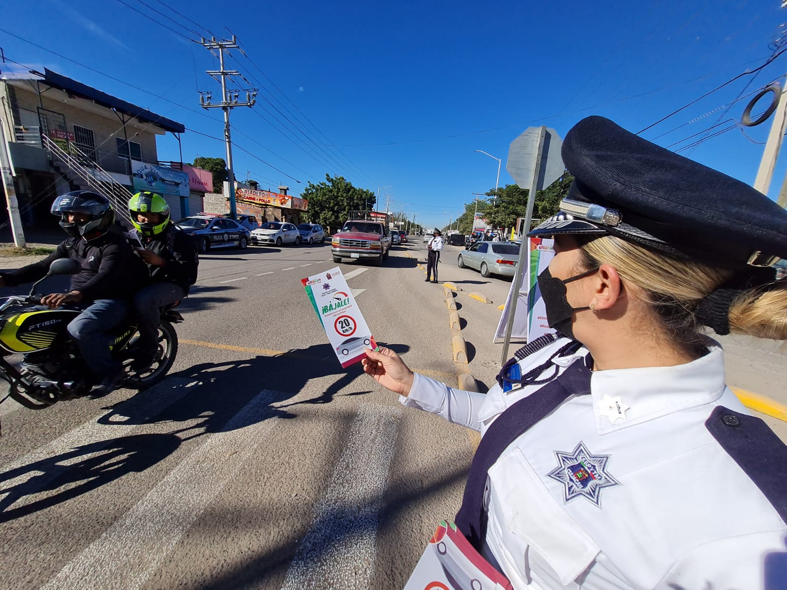 Acompañados por el secretario de Seguridad Pública y Tránsito Municipal, coronel de Infantería Mauricio García Rodríguez, y del director de Policía Municipal Unidad de Vialidad y Tránsito, subinspector Pánfilo Antonio Díaz Juárez, los agentes Viales y Preventivos invitaron a los ciudadanos para que respeten tanto la Ley de Transportes, Ley de Movilidad, y el Bando de Policía y Gobierno, mediante entrega de trípticos que contienen información relativa a este trabajo de prevención.