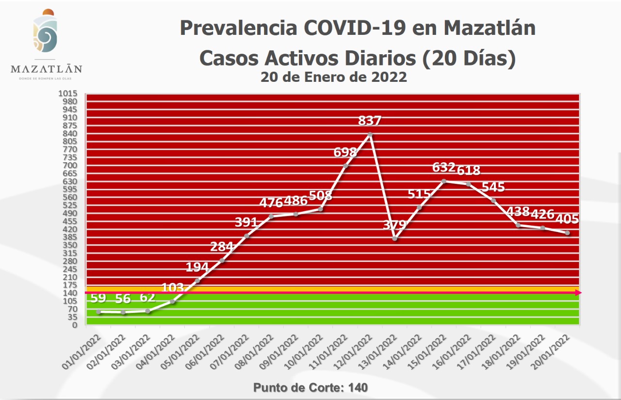 MAZATLÁN, Sin.- Desde el pasado 15 de enero, este municipio mantiene una tendencia de más recuperados y menos contagios, y este viernes amaneció con 405 casos activos de COVID-19, informó Cristian Castillo López, encargado de Protocolos y Sanidad del Ayuntamiento.