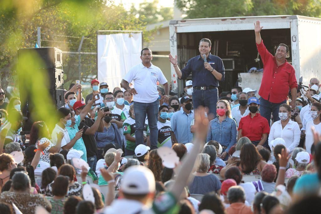 “Con Fernando Pucheta de alcalde, con los candidatos de la Alianza a diputados locales y federales; y con su amigo Mario Zamora de gobernador, ustedes en los próximos seis años, en su casa y su bolsillo, hago el compromiso de que van a estar mucho, pero mucho mejor”, aseguró el abanderado de los partidos del PRI, PRD y PAN.