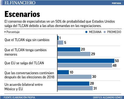 De acuerdo con una encuesta realizada por El Financiero a más de 15 economistas de las principales instituciones financieras y universidades del país, el consenso ve un 50 por ciento de probabilidad que la delegación estadounidense se levante de la mesa de negociaciones.