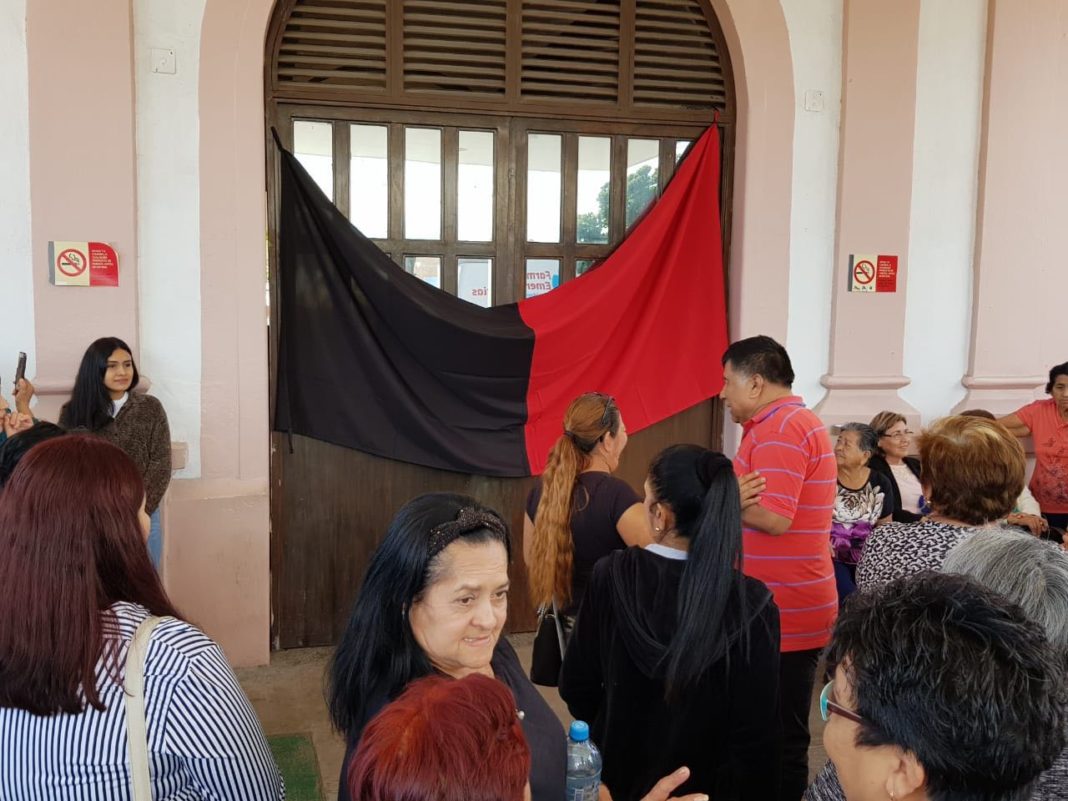Esta tarde el acceso principal se encuentra cerrado con una bandera rojinegra en señal de protesta ante las demandas añejas del sindicato y con la advertencia de no levantar la huelga hasta no cumplirse las demandas del gremio.