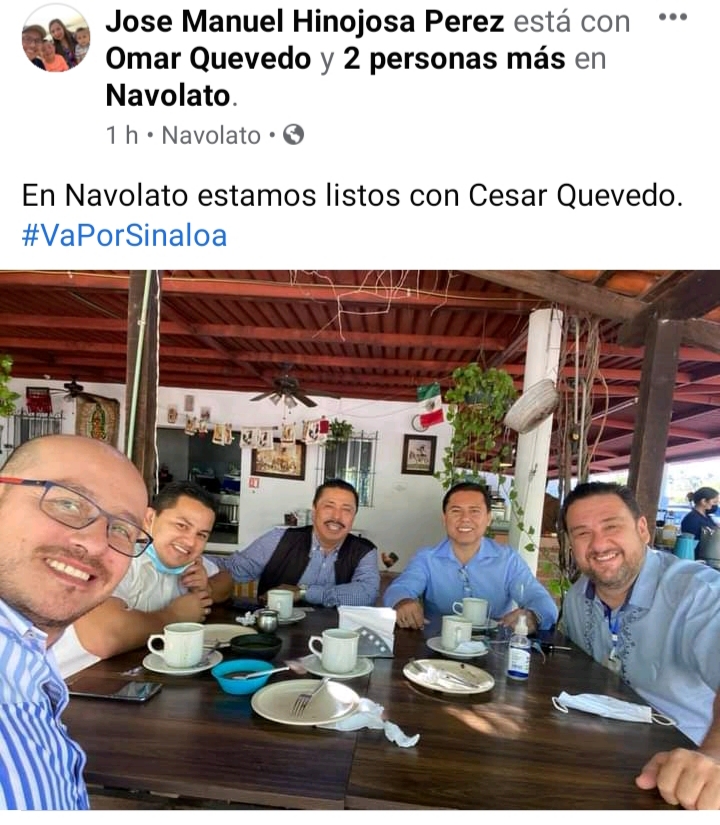CULIACÁN, Sin.- “En Navolato estamos listos con César Quevedo” fue la frase que usó el delegado del Comité Ejecutivo Nacional del PAN en Sinaloa, José Manuel Hinojosa Pérez, en una reunión con el subsecretario César Quevedo Inzunza, originario de este municipio.