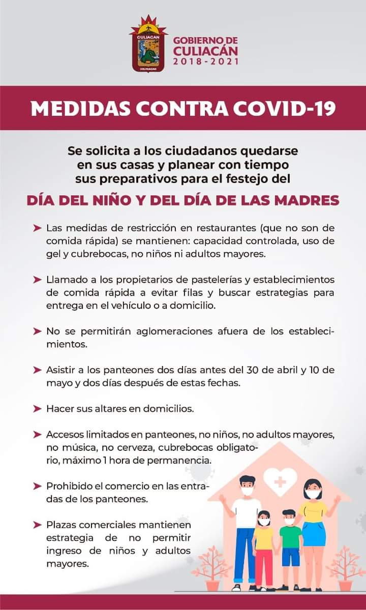 CULIACÁN, Sin.- El gobierno de Culiacán recordó a sus ciudadanos que para el próximo 30 de abril no se permitirá la asistencia de menores a restaurantes, plazas y centros comerciales.