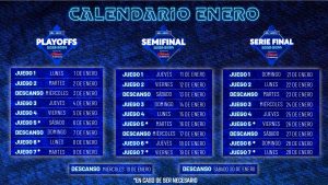 Entre cada ronda y al cambio de cada sede existirá un día de descanso, empezando las series Semifinales el jueves 11 de enero, con extensión máxima al viernes 19 de enero.