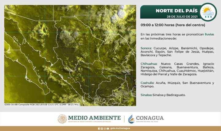 CULIACÁN, Sin.- Durante las próximas horas de la mañana de este miércoles se pronostican condiciones de lluvias en Sinaloa municipio y Badiraguato.