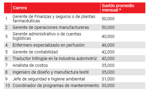 De acuerdo con la firma, en el análisis solo se tomaron en cuenta puestos especializadas o gerenciales con un límite de sueldo promedio de 50 mil pesos y no considera posiciones directivas.