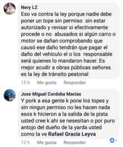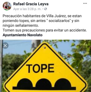 Apenas los colocaban y los ciudadanos que regularmente circulan por el área desataron críticas, etiquetando incluso al Ayuntamiento de Navolato por malas prácticas y donde se beneficia a un particular, cuya propiedad es un negocio contiguo.