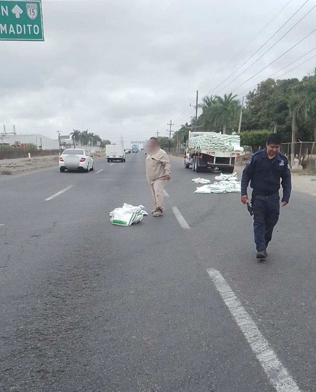 CULIACÁN, Sin.- Durante las primeras horas de este lunes agentes de la policía municipal auxiliaron a un particular que transportaba decenas de costales en un tractocamión al sur de Culiacán.