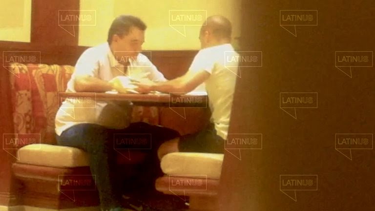 La conversación se escucha con cierta claridad a pesar de que la cámara se encuentra relativamente lejos de la mesa donde están sentados los hombres. Unos momentos después, Pío pasa el sobre a su lado en el sillón donde está sentado. “Lo voy a pasar para abajo”, dice. “No se te vaya a destripar”, le contesta León.