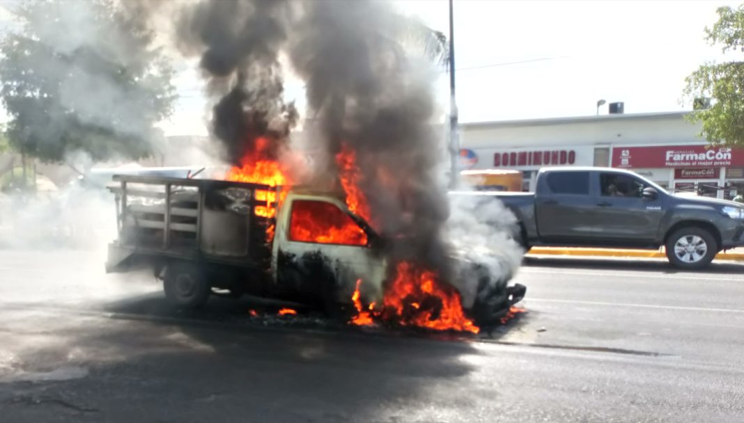 CULIACÁN, Sin.- Una camioneta propiedad de una empresa recicladora explotó esta mañana sobre el bulevar Pedro Infante en Culiacán.