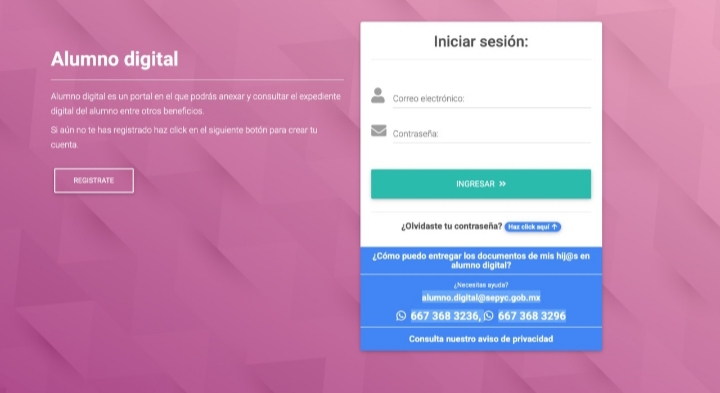 En caso de requerir ayuda, tener alguna duda o hacer una aclaración, la SEPyC pone a disposición de los interesados el correo electrónico alumno.digital@sepyc.gob.mx, así como los números de WhatsApp (667) 368 3236 y (667) 368 3296.