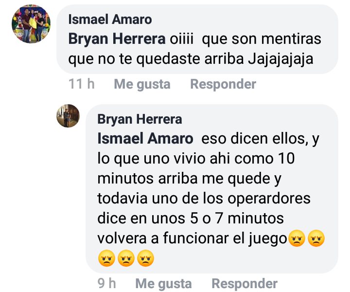 A poco menos de dos horas de que el organismo del puerto descartara fallas ni personas afectadas por un suspuesto incidente, a través de su cuenta oficial de Facebook, Ismael Amaro respondió que fueron 10 minutos suspendidos en un carro de la Montaña Rusa.