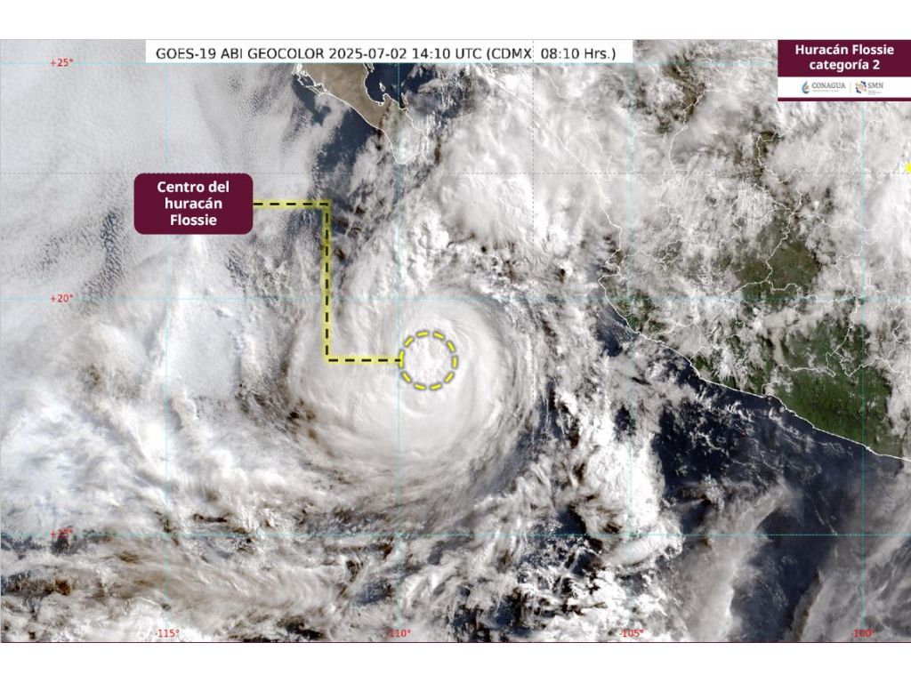 CIUDAD DE MÉXICO.- El huracán Flossie se debilita a categoría 2 en la escala Saffir-Simpson con vientos máximos de 175 km/h y rachas de 215 km/h.