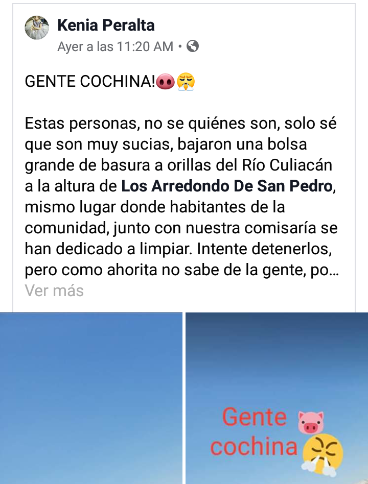 “Deberíamos de limpiar el cochinero que estas personas tiran en el río y ponerleselas en la entrada de sus casas, a ver si les va a gustar y si así dejan de contaminar..! ?”, finalizó en la publicación.
