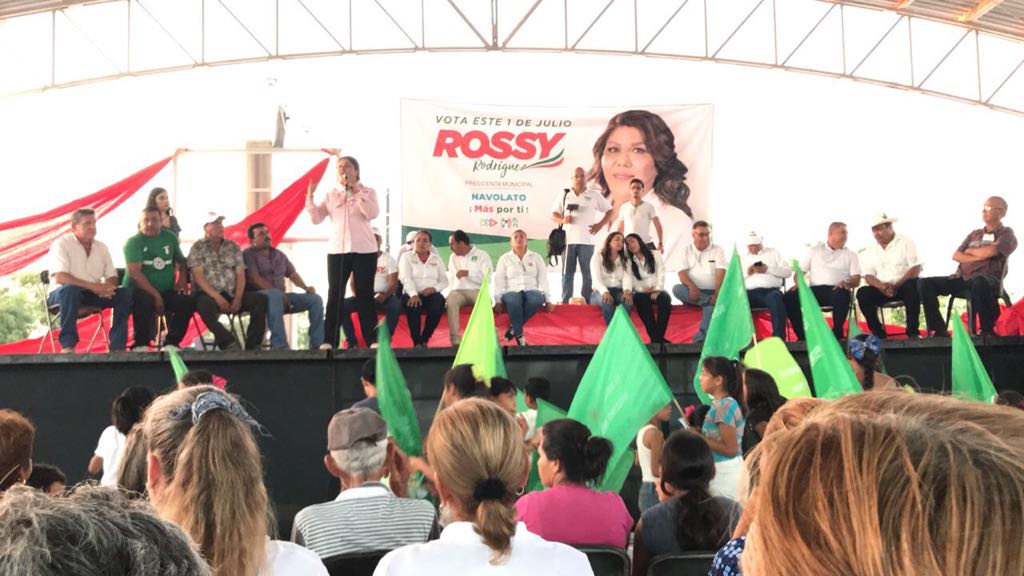 En una techumbre abarrotada se escuchaban las porras y gritos en apoyo a Rossy Rodríguez, sobre todo se apreciaba el entusiasmo del electorado femenino.
