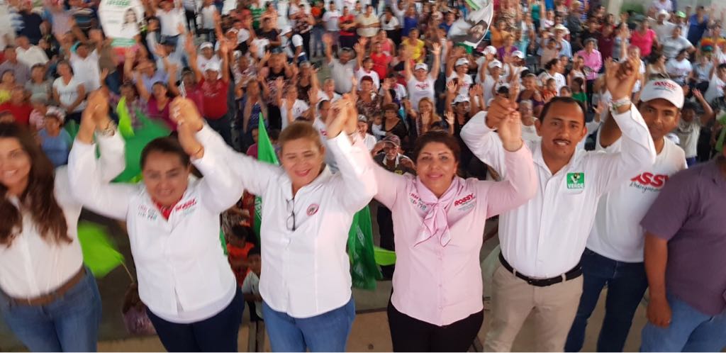 En una techumbre abarrotada se escuchaban las porras y gritos en apoyo a Rossy Rodríguez, sobre todo se apreciaba el entusiasmo del electorado femenino.